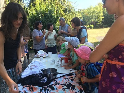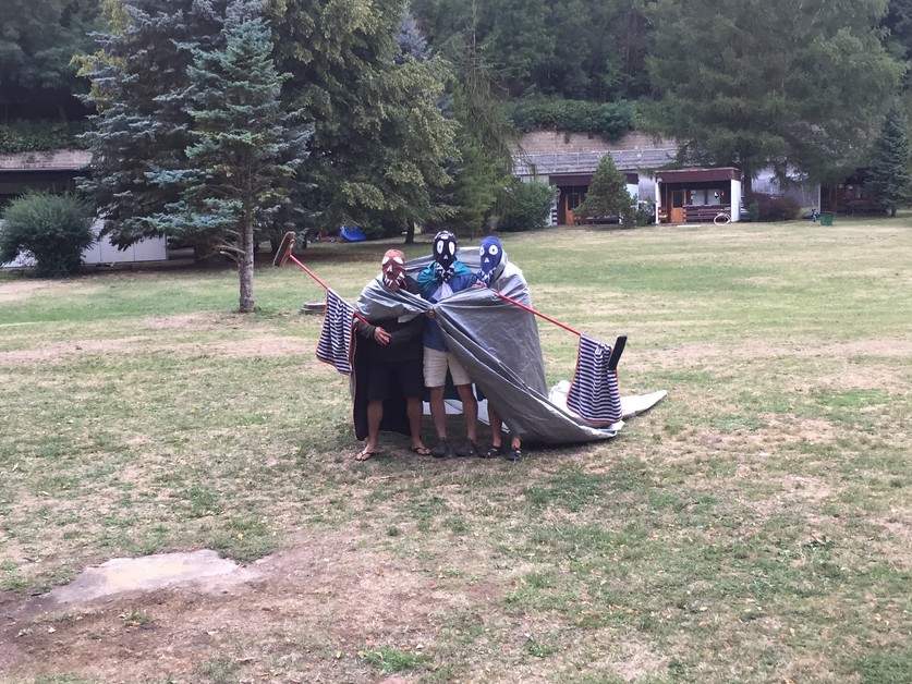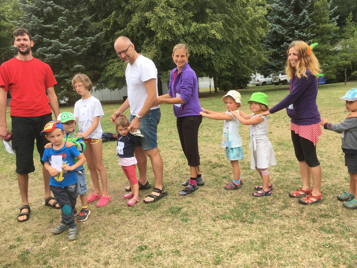 Vedro tedy příšerné, ale naštěstí koupaliště funkční, většina osazenstva rovněž nápomocna, resp. bylo dost těch, kteří se zapojili, aby to fungovalo. Na ostrově Smyslů a nesmyslů jsme ochutnávali barevné kaše, na Včelím ostrově jsme postavili úl a zkusili si najít nové včelí útočiště.