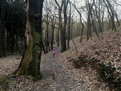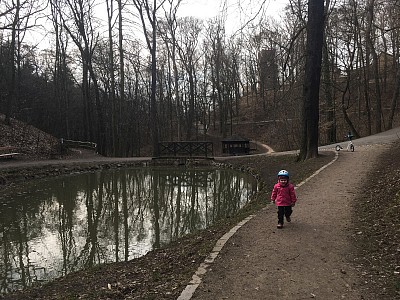 Po obědě odpočinek, holky si hrajou, že jdou na výlet, Tonda na tabletu sjíždí videa z autobusových garáží, sepisuje nad mapou nové linky a buduje dopravní model. V půl čtvrté jsme se konečně vyprdelili ven. Koloběžky, odrážedlo a aspoň k nám do lesa. Ostatně jsme tam stejně dlouho nebyli. Přes trať, kolem nové výstavby na vyhlídku, k Dračí skále. Pak po asfaltce k altánu, přes přejezd na lesní hřiště a kolem Diany domů. Nakonec celkem vydatná a moc pěkná procházka a v půl sedmý jsme doma.