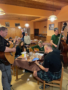 V neděli jsme si dali pingpong, kluci neúnavně kopali do balonu, vycházka standard na Šibeničák, Lesní kapli a kolem kostela zpátky a večer mohl vypuknout Silvestr. Bylo toho akorát, večírky byly úderné a v pondělí po krátké procházce k vyhlídce na Kašperk jsme vyrazili domů a do nového roku.